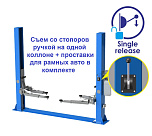 г/п. до 4 тонн, предназначен для подъема легковых автомобилей, внедорожников, пикапов и легких грузовиков. Снятие и установка на «стопора» с пульта управления (электростопора). Максимальное расстояние между подхватами: 2550 мм. Высота подъема лап (с подхватами): 1800 (1990) мм. Длина задних лап: 780-1200 мм. Длина передних лап: 780-1200 мм. Вес: 700 кг.