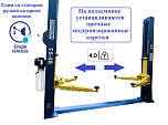 г/п. - 4 т. Для подъема легковых автомобилей всех моделей и марок при их техническом обслуживании и ремонте. Максимальное расстояние между подхватами: 2550 мм. Высота подъема лап (с подхватами): 1800 (1990) мм Длина задних лап: 780-1200 мм. Длина передних лап: 780-1200 мм. Толщина металла в стойках - 5,2 мм, толщина тросов синхронизации - 9 мм. Вес: 630 кг.