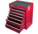 7 ящиков. С боку расположен шкаф с распашной дверцей, которая открывается с помощью пластиковой ручки и замка. Имеются 2 полки, расположенные внутри шкафа, можно отрегулировать по необходимости. Дугообразная боковая ручка. Выдвижные ящики оснащены нескользящими вкладками. В комплекте предусмотрен верхний коврик из EVA, предназначенный для удобного хранения различных мелких деталей. Роликовые направляющие с функцией автоматического возврата обеспечивают плавность открывания/закрывания ящиков.