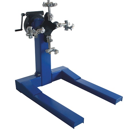 Оснащен редуктором для быстрого вращения одной рукой. П-образная рама. 4 поворотных колеса обеспечивают маневренность и устойчивость к перевороту. С 4-мя регулируемыми кронштейнами для удобства вывешивания и обслуживания ДВС легковых и легких грузовиков. Можно установить кантователь вплотную к моторному отсеку автомобиля. г/п: 907 кг.