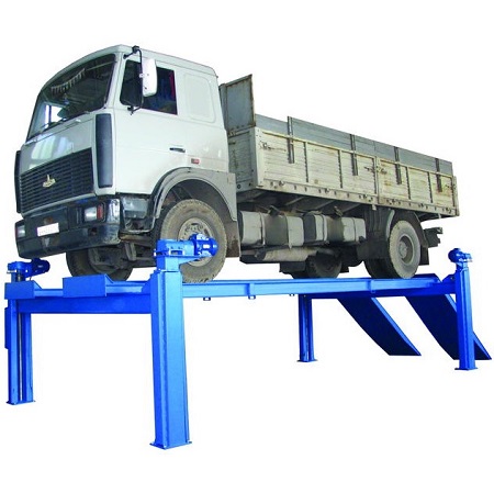 г/п. 10 тонн. Четырехстоечный. Электромеханический. Для ремонта грузовых автомобилей отечественного и импортного производства и автобусов на любой ровной площадке. Привод червячный редуктор, с концевыми выключателями нажимного действия, ограничивающими ход каретки. По отдельному заказу комплектуется установочными рамами. Поставляется в 2 вариантах Стандарт (в помещение) и ТЗ (Для эксплуатации на улице).