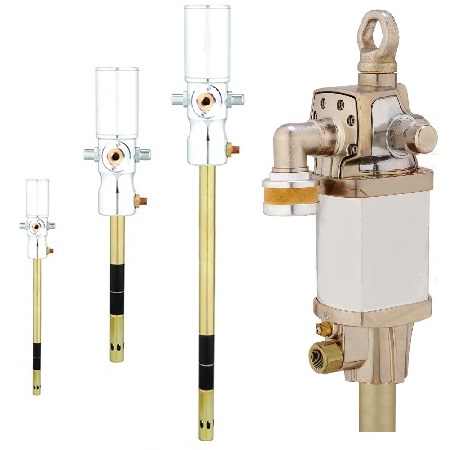 Насос пневматический для масла из бочки 180-220л. ТОЛЬКО ДЛЯ «ЖИДКИХ» МАСЕЛ (моторных и т.п) и ATF до 130 SAE. Сжатие 3:1, производительность насоса 18 л/мин. Давление масла 24 Бар. Высота насоса 940 мм.