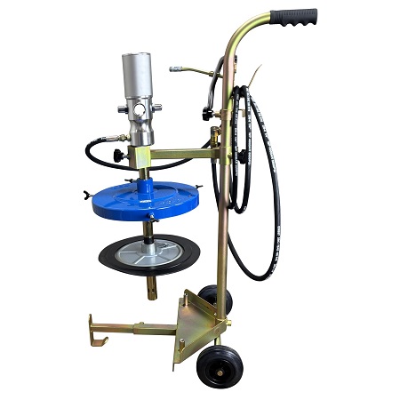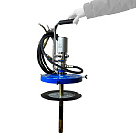 Нагнетатель предназначен для раздачи густой смазки из бочек объемом 190 л. Состоит из 2-х независимых и раздельных насосных систем, что предотвращает попадание отработанной влаги компрессора в емкость с перекачиваемым маслом. Длина шланга: 6 м. Давление смазки: 180-405 бар. Коэффициент передачи давления: 5:1. Производительность: 30 см³/с. Длина раздаточного шланга: 305 см. Вес: 15,5 кг.
