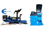 Комплект из грузового автоматического шиномонтажного станка TS-56 до 60". Двухскоростной. Моторы 4 + 4 кВт. Гидравлический насос – «BUCHER HIDRAULICS». Диски ALU, сталь, с кольцом и без 14÷60”. Колесо макс. Ø2600 мм, делает колеса "спарку" с шириной диска до 1400 мм. Вес колеса до 2000 кг. Гарантия до 18 мес. Для тракторов, комбайнов, лесной и карьерной техники + Грузовой балансировочный станок ЛС-32 MAXY PM. Для колес от 10-30 дюймов. Универсальный. Макс. вес колеса до 200 кг. 21-дюймовый VGA монитор с высококачественной 3D графикой. Два режима работы. Настройка «нуля». Программа автоматической калибровки. Программа самодиагностики (режим ТЕСТ). Функция «Четыре оператора». Функция «Opt». Режим автоматического приведения колеса в позиции установки корректирующих грузов. Оснащен подкатной тележкой с пневмоподъемником.