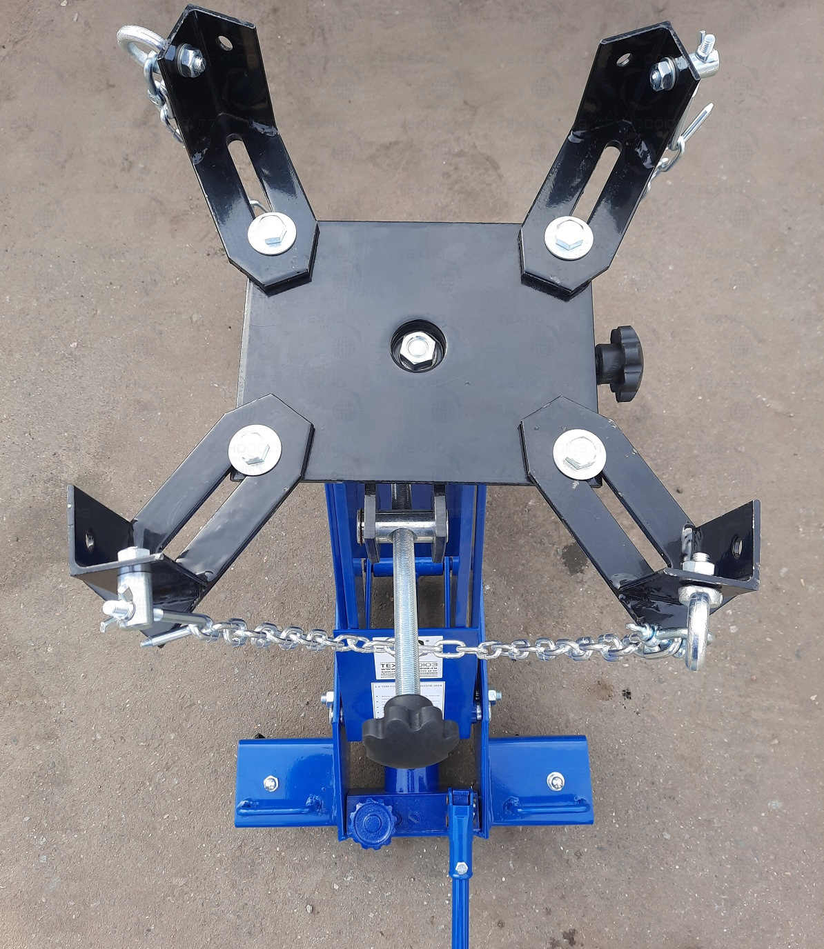 Домкрат трансмиссионный для снятия/установки ОСОБО ТЯЖЕЛЫХ АГРЕГАТОВ (КПП, мостов и т.п.) г/п 1 т. Подъем 230-760 мм. Устойчивый и маневренный – два колеса поворотные. Оборудован страховочной цепью, для фиксации агрегата. Приемная площадка регулируется с фиксацией в трех плоскостях: продольно, по наклону, по оси вращения.