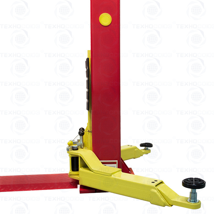 Подъемник двухстоечный с нижней синхронизацией и грузоподъемностью до 4 тонн, предназначен для подъема легковых автомобилей всех моделей и марок при их техническом обслуживании и ремонте. Максимальное расстояние между подхватами: 2550 мм. Высота подъема лап (с подхватами): 1800 (1990) мм Длина задних лап: 780-1200 мм. Длина передних лап: 780-1200 мм. Толщина металла в стойках - 5,2 мм, толщина тросов синхронизации - 9 мм. Вес: 630 кг.