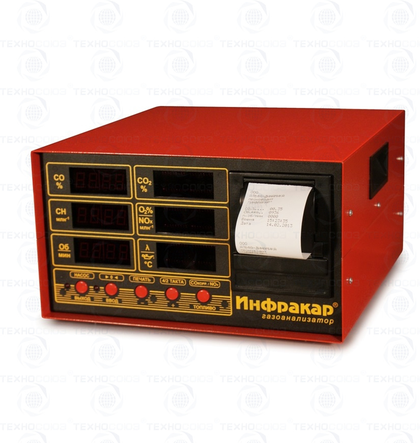 Автомобильный 5-ти компонентный газоанализатор «Инфракар 5М-2Т.02 предназначен для измерения объемной доли оксида углерода (СО), углеводородов (CН) (в пересчете на гексан), диоксида углерода (СО2), кислорода (О2), окислы азота(NOx) в отработавших газах автомобилей с бензиновыми двигателями. Лямбда + Тахометр + Температура масла + RS-232 + Принтер + Автослив конденсата + Автоподстройка нуля + Работа с ЛТК и мотортестерами. Внесен в Госреестре средств измерений РФ, Республики Беларусь и Казахстан.