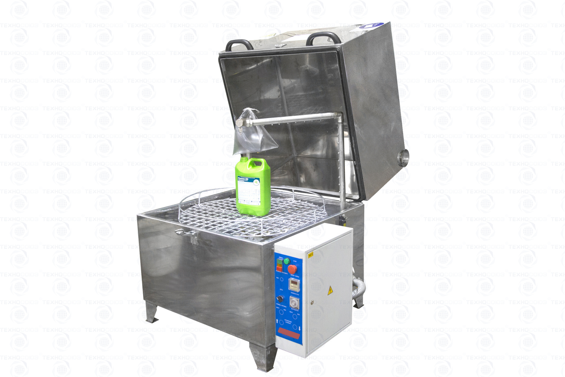 Установка для автоматической мойки сильно загрязненных деталей. Рекомендуется для специализированных мастерских и автосервисов по ремонту двигателей, коробок передач, раздаточных коробок, редукторов легковых автомобилей, микроавтобусов, топливной аппаратуры, мойки электро- бензоинструментов, лодочных моторов большой мощности, а также сильно загрязненных деталей машин и механизмов и т.п. Мойка рекомендуется для обезжиривания деталей в производственных условиях. Три нагревательных элемента(тэна) мощностью 3,6 кВт. Вращение загрузочной корзины мойки осуществляется с помощью водного потока от моющих форсунок. Две поворотные консоли для подачи моющего раствора.