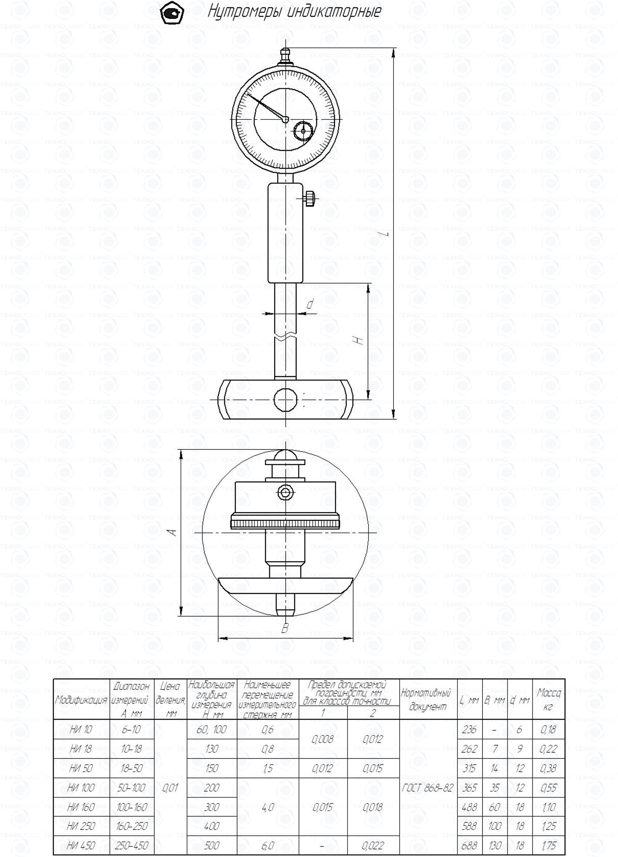 Нутромеры индикаторные с ценой деления 0,01 мм. Предназначен для измерения внутренних размеров от 100 до 160 мм. В нутромерах НИ 50, НИ 100, НИ 160, НИ 250, НИ 450 перемещение подвижного измерительного стержня передается на отсчетное устройство при помощи рычажной передачи. Класса точности 2. ГОСТ 868-82. Поставляется в двух вариантах с поверкой и без поверки!