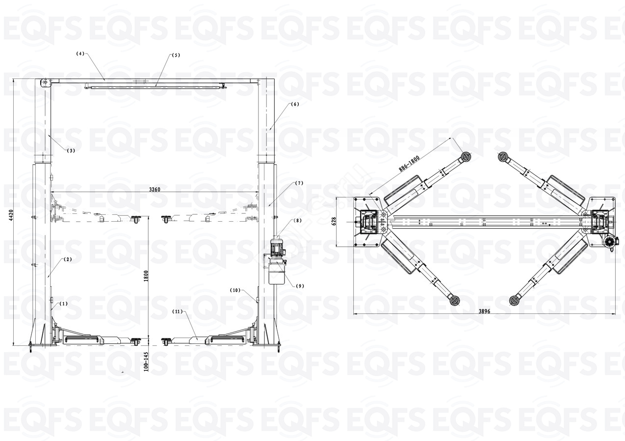 Подъемник автомобильный двухстоечный поставляется в металлической обрешетке, предотвращающей повреждения при отгрузке и транспортировке.