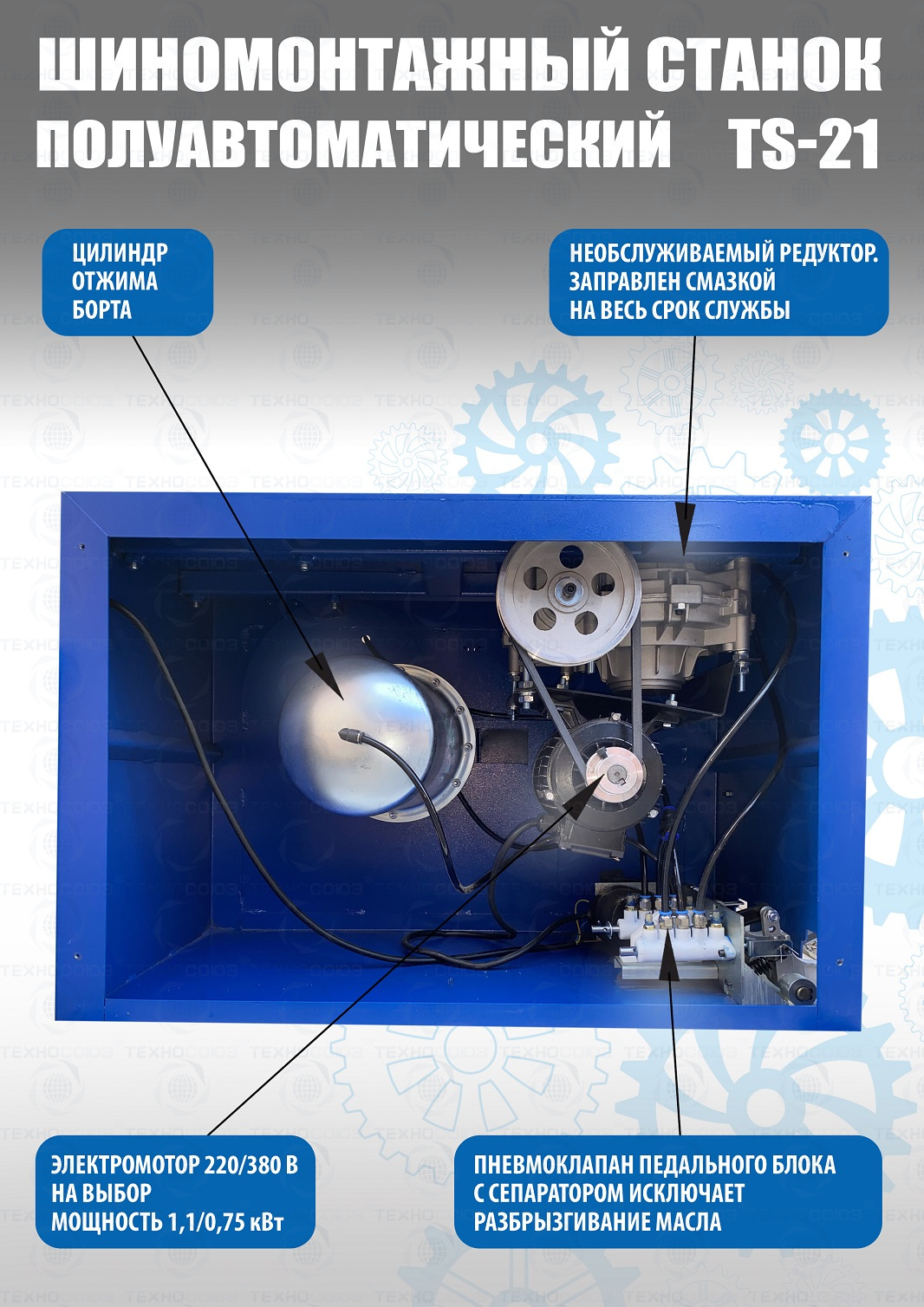 Шиномонтажный станок оснащен редуктором, который заправлен смазкой.