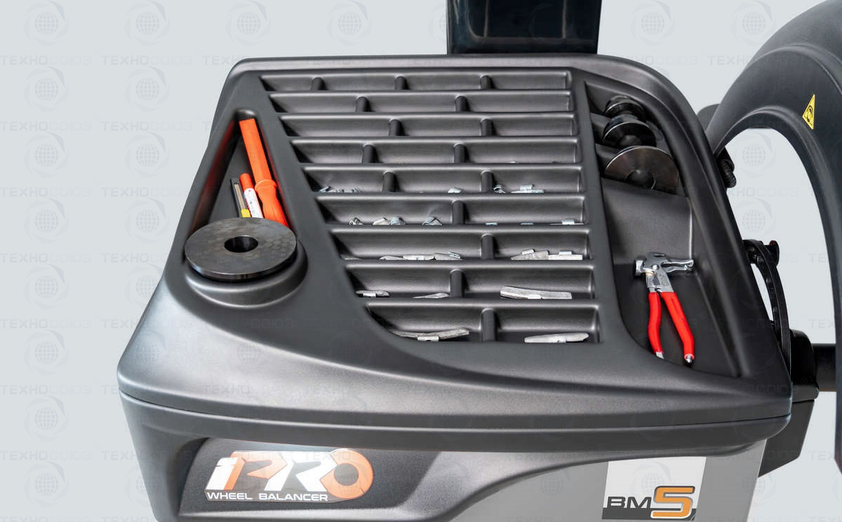 • Дополнительные полки для хранения коробок с балансировочными грузами, конусов и других приспособлений.
