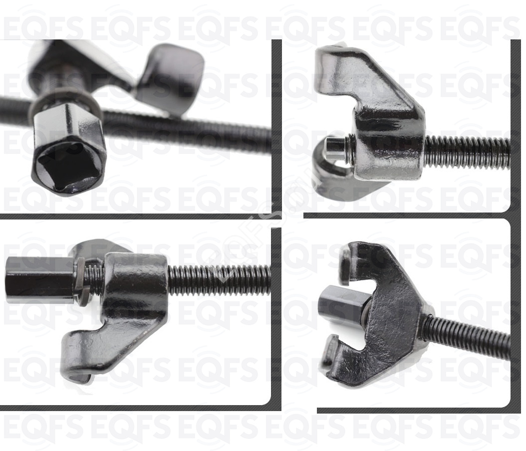 Винты с усиленной резьбой имеют шестигранный привод под ключ и квадрат под вороток 1/2’’. Подходит для использования в труднодоступных местах колесной ниши. Специальные раздвоенные концы предназначены для аккуратного захвата витков пружины. Максимальная длина захвата 280 мм.