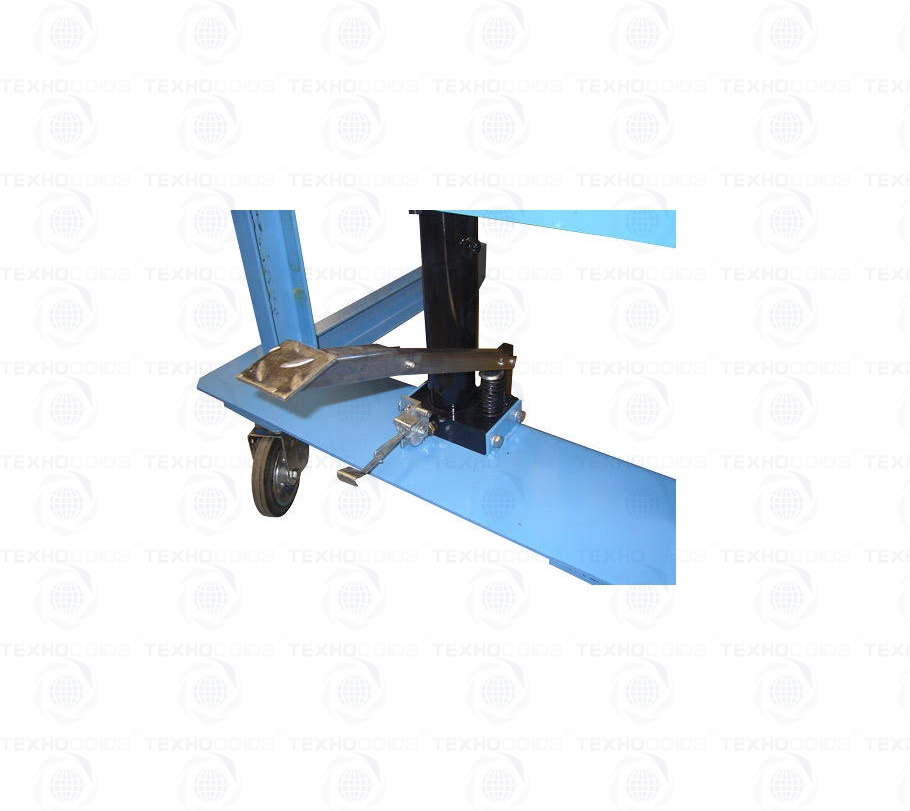 Позволяют снимать и транспортировать колеса и колесные пары в сборе. Просты в эксплуатации, маневренны и легки в перемещении. Привод подъема гидравлический, ножной педалью. Усилие на педали при подъеме груза массой 750 кг не более 30 кг.