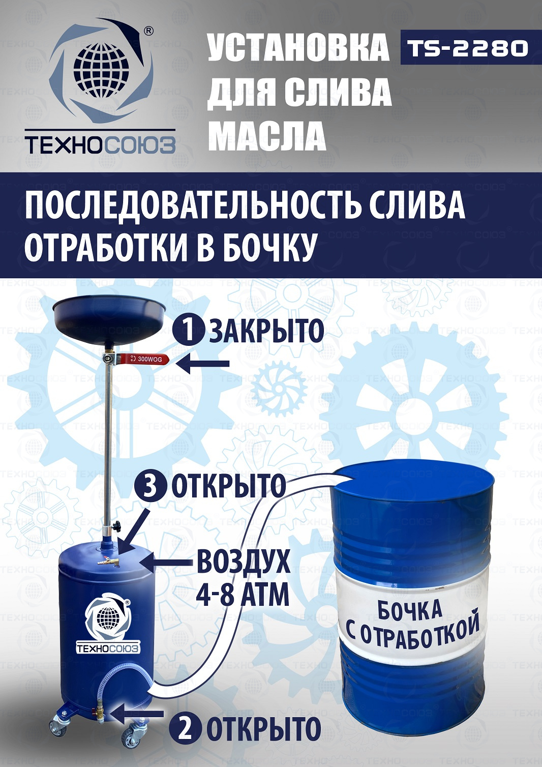 Технические особенности установки для слива и сбора отработанного масла TS-2280: